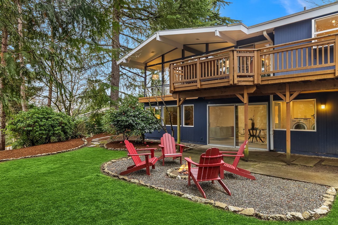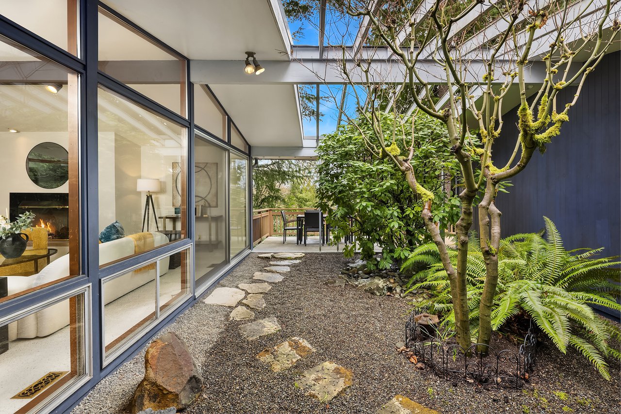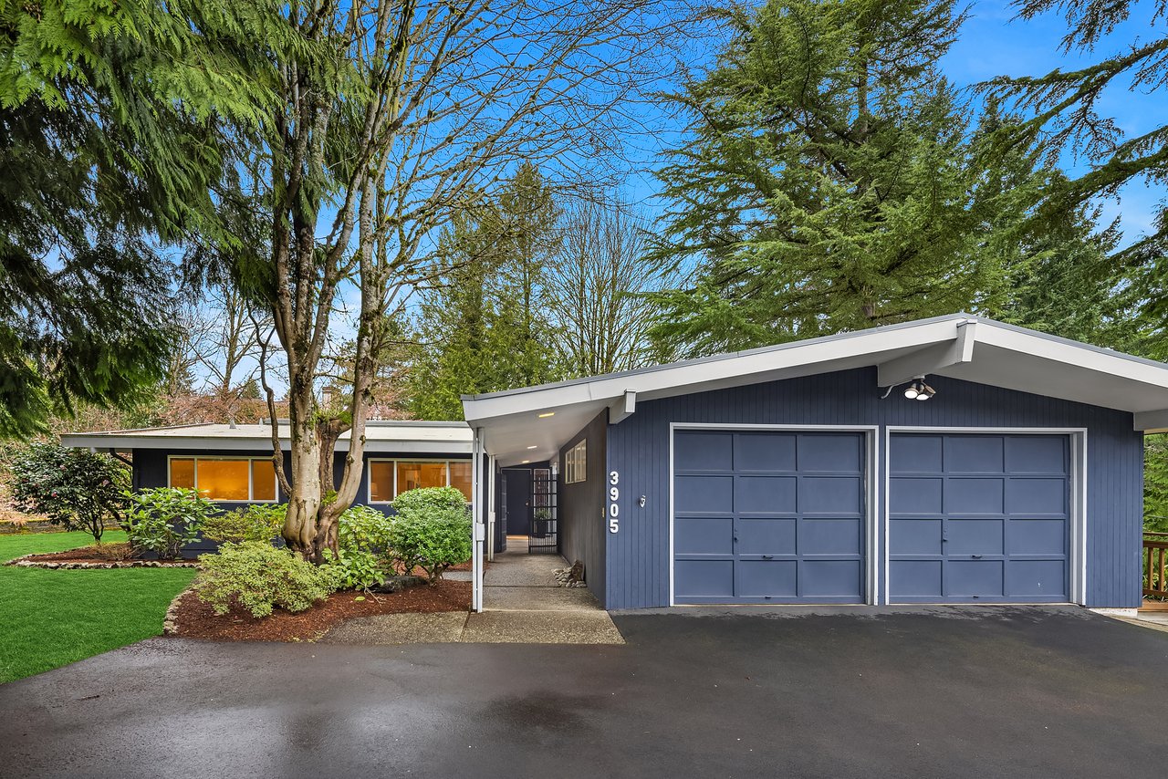 Mid-century gem in Mercer Island’s coveted north end. Enter through a beautifully landscaped courtyard into a living room w/ vaulted ceilings & walls of windows full of natural light. A spacious kitchen w/ multiple outdoor decks create seamless indoor-outdoor living, ideal for entertaining. The light & bright main level features hardwood floors & three bedrooms including a primary suite w/ en-suite bath. The spacious lower-level walk-out offers a large recreation room w/ wood-burning fireplace, a large 4th bedroom & newly remodeled bath, and expansive flex space - perfect for guests, work, or play. Tucked at the end of a quiet cul-de-sac in Mercerwood Estates on an oversized lot with level back play yard, this home is just minutes from top-rated schools, JCC, Shorewood Club, parks, shopping, and easy I-90 access. A rare combination of timeless design, comfort, and location.