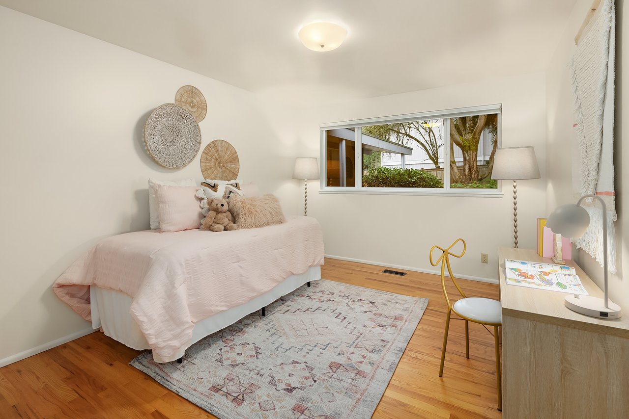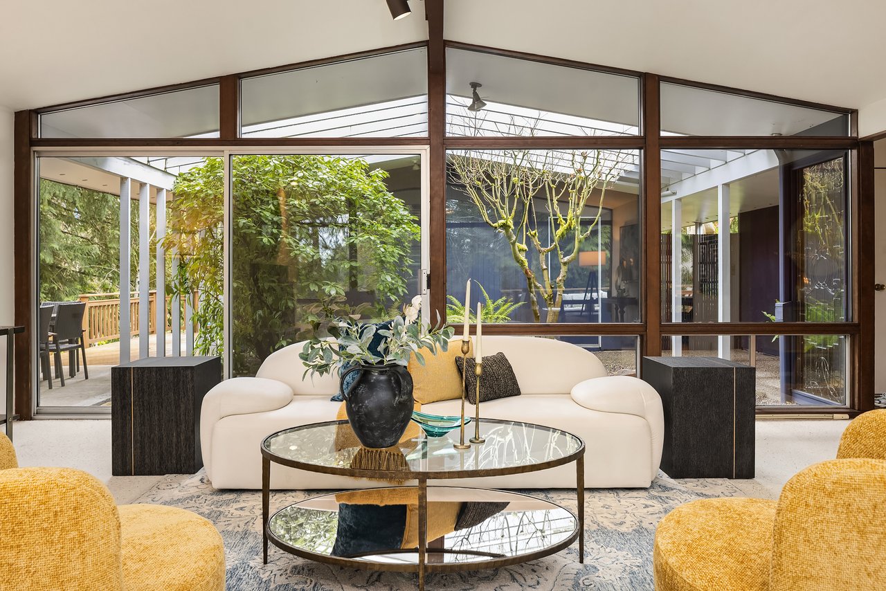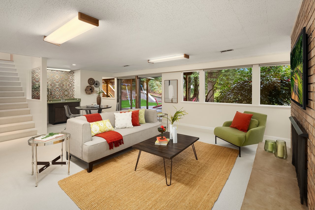 Mid-century gem in Mercer Island’s coveted north end. Enter through a beautifully landscaped courtyard into a living room w/ vaulted ceilings & walls of windows full of natural light. A spacious kitchen w/ multiple outdoor decks create seamless indoor-outdoor living, ideal for entertaining. The light & bright main level features hardwood floors & three bedrooms including a primary suite w/ en-suite bath. The spacious lower-level walk-out offers a large recreation room w/ wood-burning fireplace, a large 4th bedroom & newly remodeled bath, and expansive flex space - perfect for guests, work, or play. Tucked at the end of a quiet cul-de-sac in Mercerwood Estates on an oversized lot with level back play yard, this home is just minutes from top-rated schools, JCC, Shorewood Club, parks, shopping, and easy I-90 access. A rare combination of timeless design, comfort, and location.