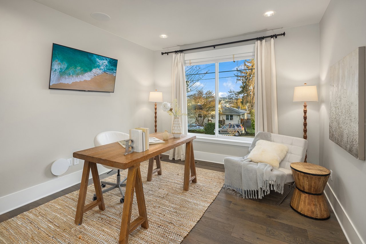 Discover effortless modern living in Kirkland’s highly sought-after Norkirk neighborhood. The main level thoughtfully blends style and function, anchored by a chef’s kitchen with high-end appliances, oversized island and butler’s pantry. Multiple dining spaces and an inviting living room with a sleek gas fireplace open effortlessly to the outdoors, creating a natural indoor-outdoor flow. Step outside to your own private retreat designed for year-round entertaining - complete with a wood-fired pizza oven, covered grilling area, composite deck, low maintenance turf, and a custom gas fire pit - perfect for long summer nights and memorable evenings with friends. Upstairs, the elegant primary suite offers a peaceful escape with a private balcony and sparkling views of Lake Washington, accompanied by three additional ensuite bedrooms. The lower level is designed for flexibility, offering expansive space for a media room, gym, play area, or guest suite. A detached 510 SF ADU with private entry adds versatility for guests, multi-generational living or rental income. Smart wiring, integrated speakers, hardwood floors, new carpet and fresh updates enhance both comfort & convenience. All just moments from Kirkland’s vibrant downtown, waterfront, parks, and top-rated schools - this is elevated Northwest living at its finest.